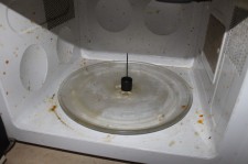 - Talíř v mikrovlné troubě podložíme nevodivými podložkami (plast) tak, aby se netočil a byl stabilní.
